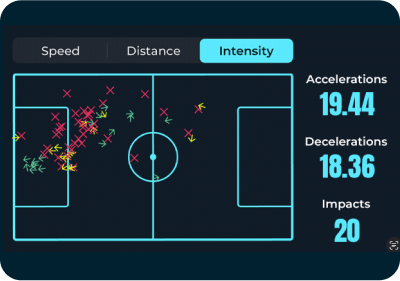 GPS Player Trackers allow players to record their activity at training and matches, monitoring various performance metrics, such as distance covered, top speed, acceleration, deceleration, and impacts.